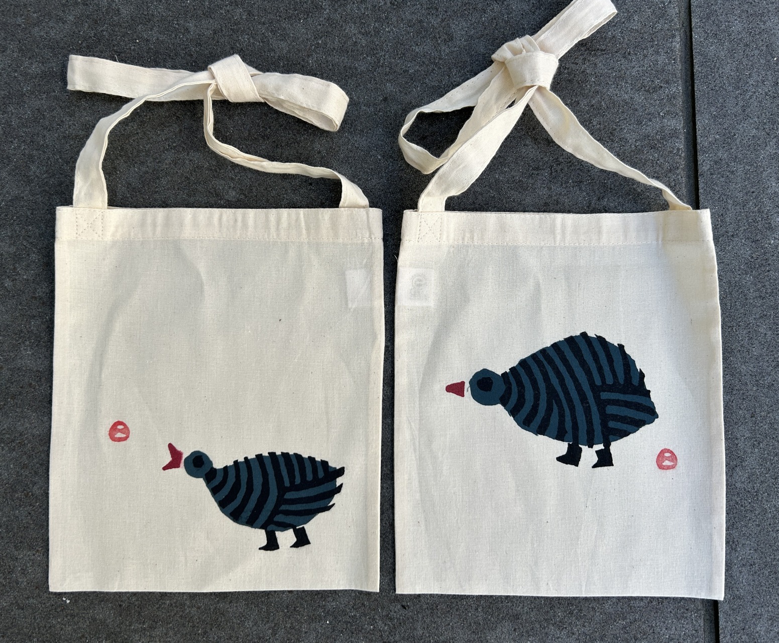 杉浦非水の図案(かたつむり・ねこ・草花)、畦地梅太郎の雷鳥のいずれかをサコッシュに2色で刷ります。